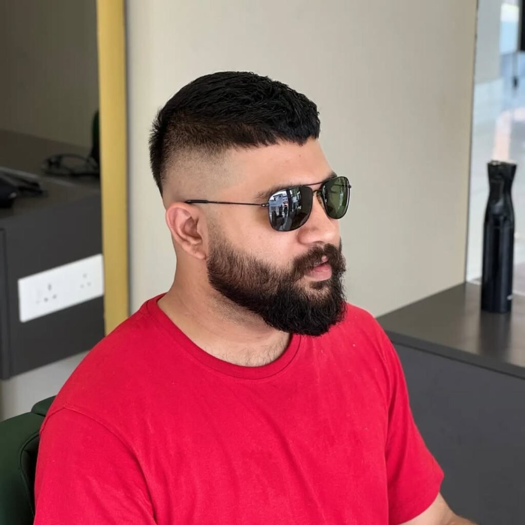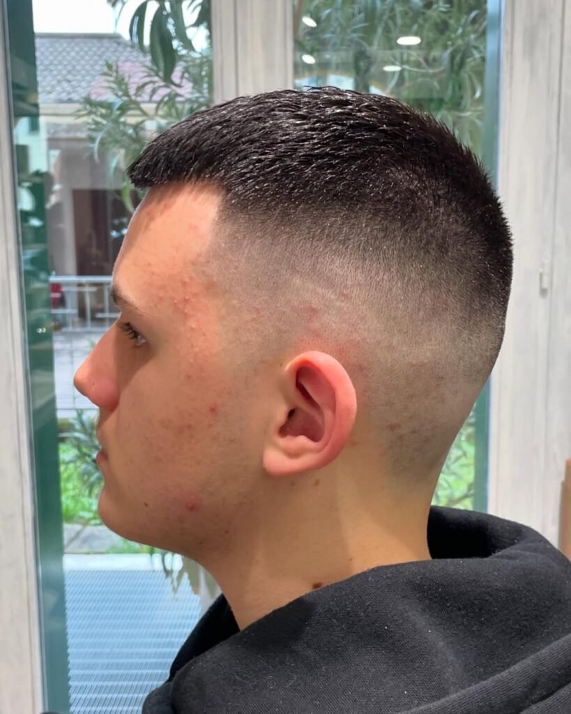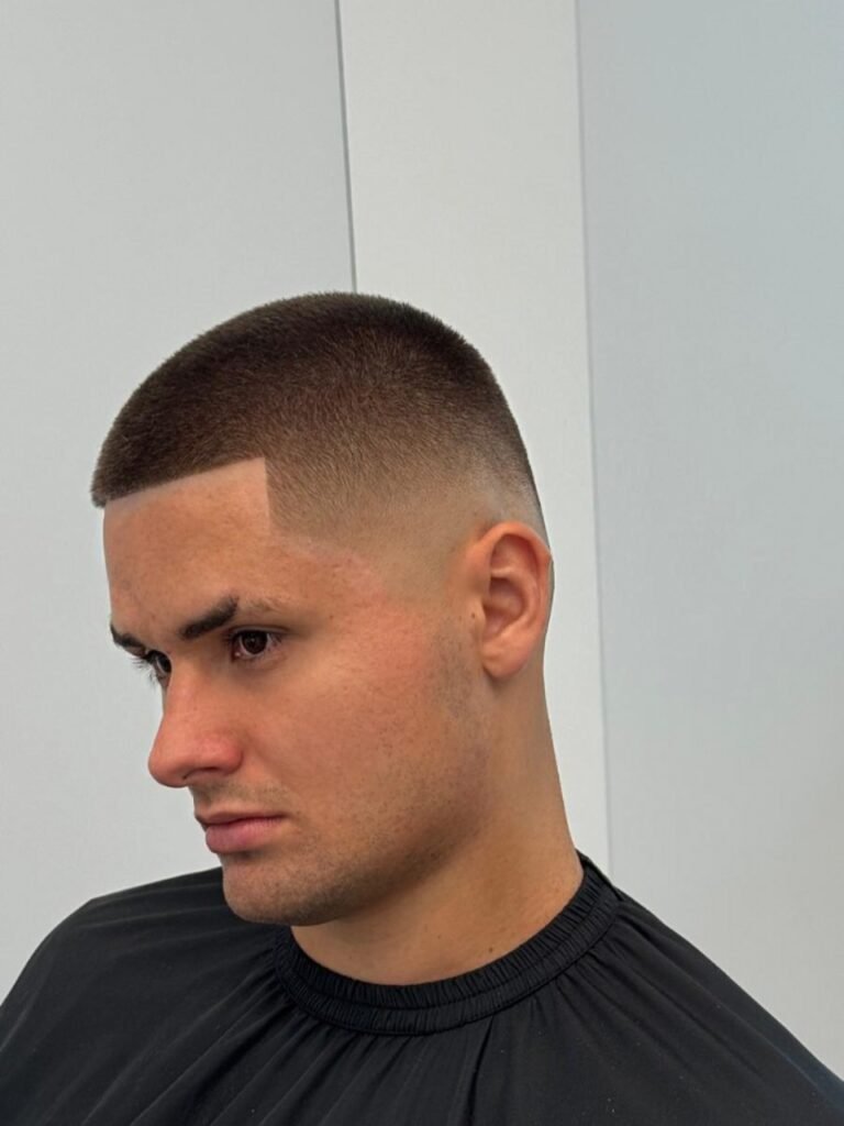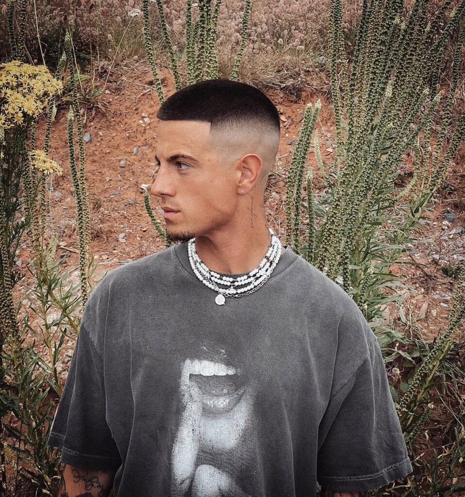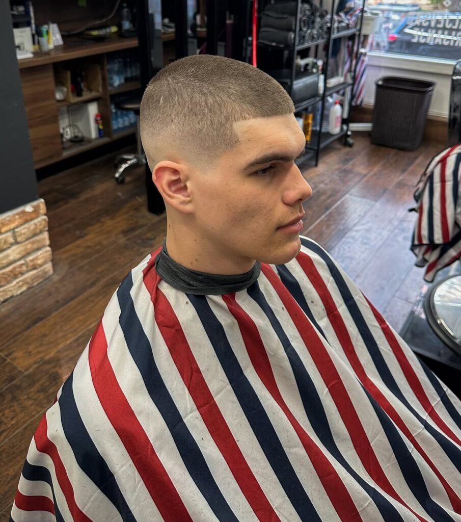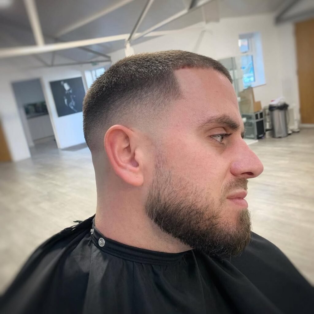 O buzz cut fade, é ideal para quem deseja um toque de modernidade no tradicional corte raspado. Com uma transição suave nas laterais, esse estilo deixa o cabelo com um acabamento mais refinado e elegante.