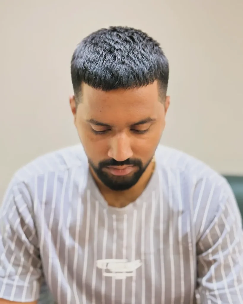 Versátil e atemporal, o corte buzz se adapta a qualquer estilo, do mais casual ao mais formal. Sua simplicidade permite que seja combinado facilmente com acessórios ou barbas, criando um visual completo e harmonioso.